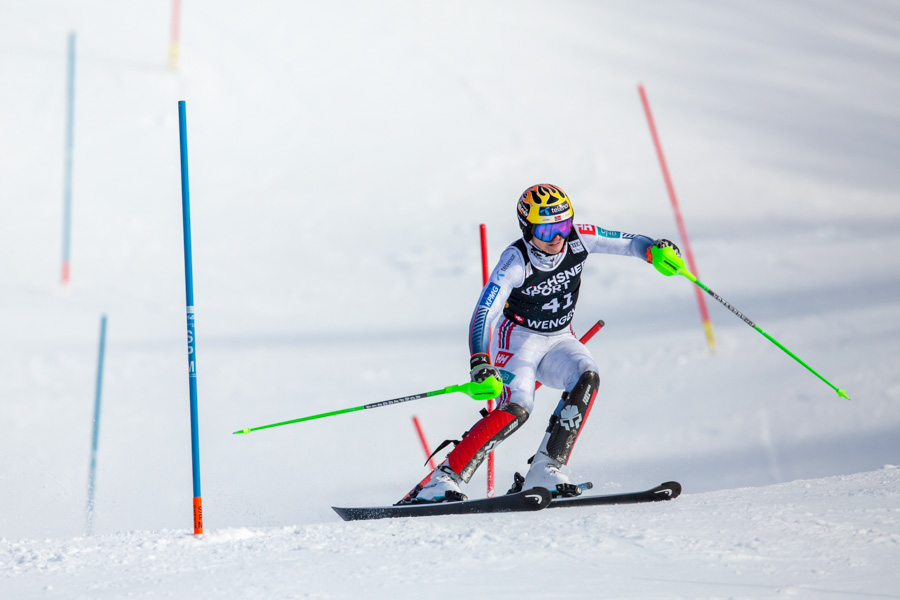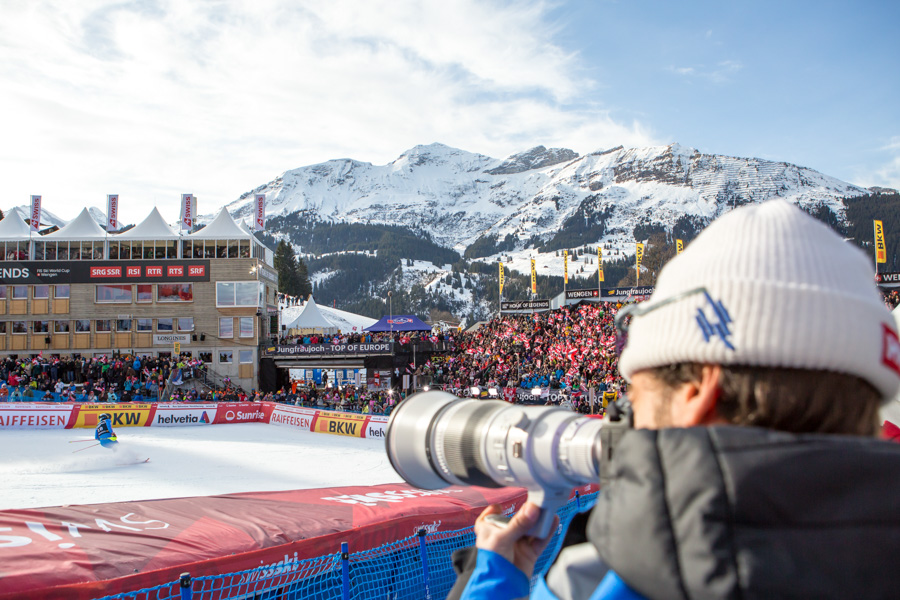 Der 18. Januar 2026 gehört zu jenen Tagen, die man als Wintersportfan tief im Gedächtnis abspeichert. Früh am Morgen strahlte der Himmel über dem Berner Oberland in einem klaren, tiefen Blau – ein nahezu perfektes Wintersportwetter. Ich hatte das Glück am Sonntag für den Slalom beim Lauberhornrennen in Wengen als freier Fotograf akkreditiert zu sein und mich unter die tausenden begeisterten Zuschauer zu mischen, die bereits Stunden vor dem Start die Atmosphäre mit Spannung und Vorfreude aufgeladen hatten.